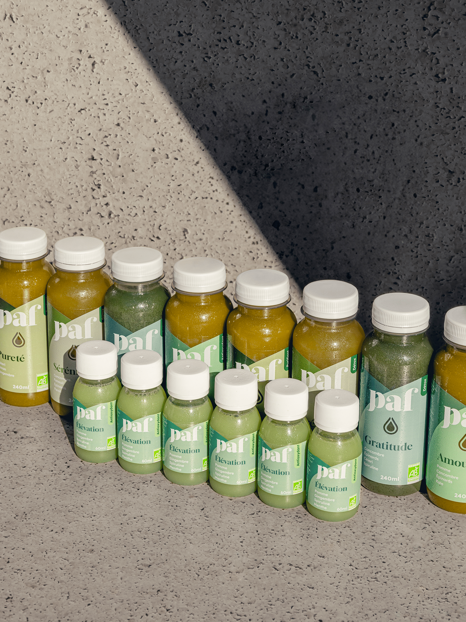 Avec une cure de jus PAF, vous vous sentirez alimenté par une énergie durable. Vous éviterez les ruées vers la caféine qui à forte dose entraîne l’effet inverse. Les enzymes et autres micronutriments présents dans les jus sont rapidement et facilement absorbées pour dynamiser le corps et rafraîchir l’esprit.